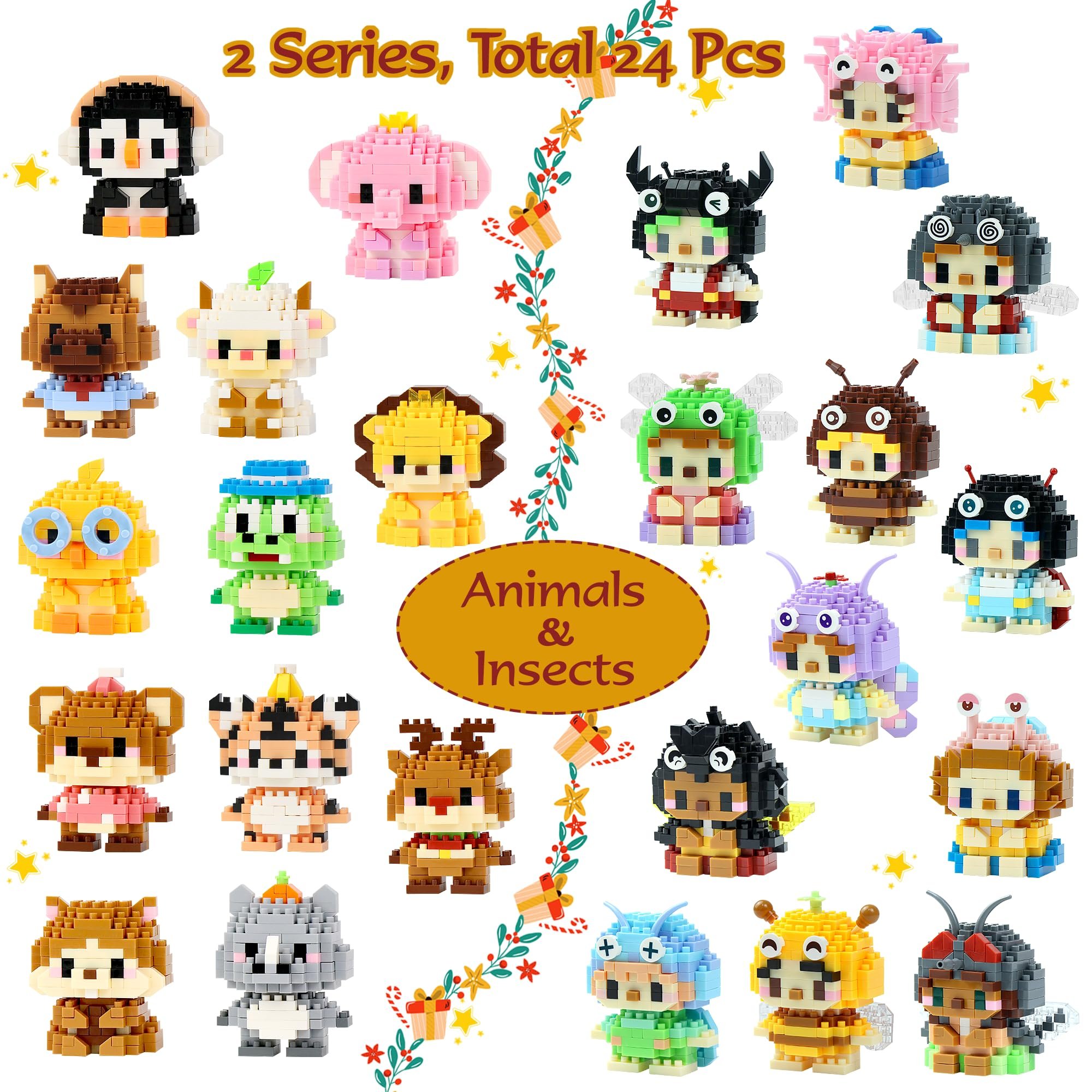 Can be combined into two large blocks: This children's advent calendar set contains 24 figures, half of which are flying insects and the other half are crawling insects. These two miniatures with different themes can be combined to form a large bee and a large scorpion, respectively. Your child can immerse themselves in the fun world of insects.
